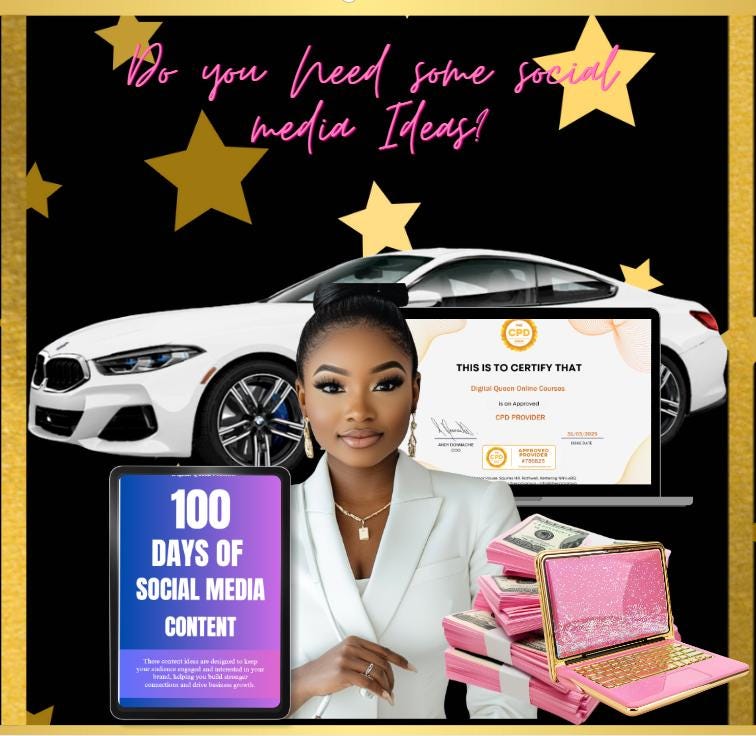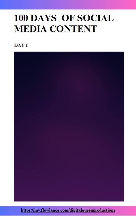 100 Days of Social Media Content is a powerful content-planning guide created to help you show up consistently, stay visible, and make a profit online. This e-book gives you 100 days of ready-to-use content ideas designed to keep your audience engaged, build trust in your brand, and support real business growth.